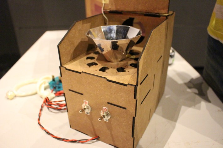 Beberscope has two parts; the projector and the installation.The projector is a combination of the praxinoscope and slide projector. The parts are made up of found objects, laser cut MDF boards and off the shelf products. For the installation, the projector is placed on a table with OHP markers and empty transparent discs for the audience to create their own 10 frame animation that will be projected onto the wall.These discs are then archived into the provided sleeves. Later audiences can then view these completed animation and leave comments or ‘Likes’ on the sleeve.